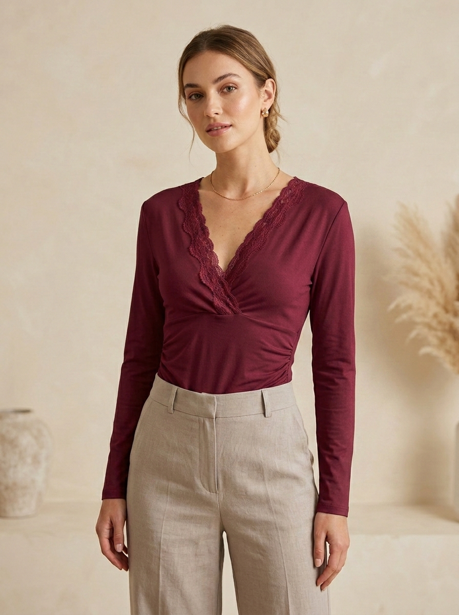 Top Col V à Dentelle – Élégance Délicate